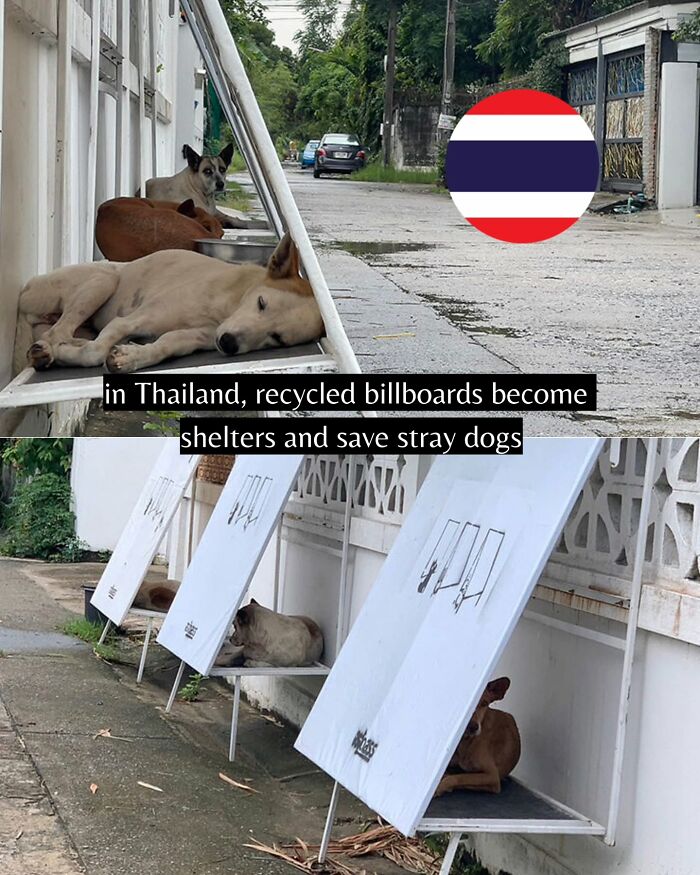 In Thailand, recycled billboards are being turned into shelters for stray dogs.